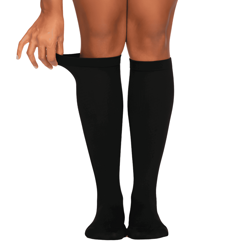 Yes! Pandore's ultra-stretch fabric comfortably fits calves up to 28 inches without digging in or rolling down – unlike traditional compression socks that don't accommodate larger legs.