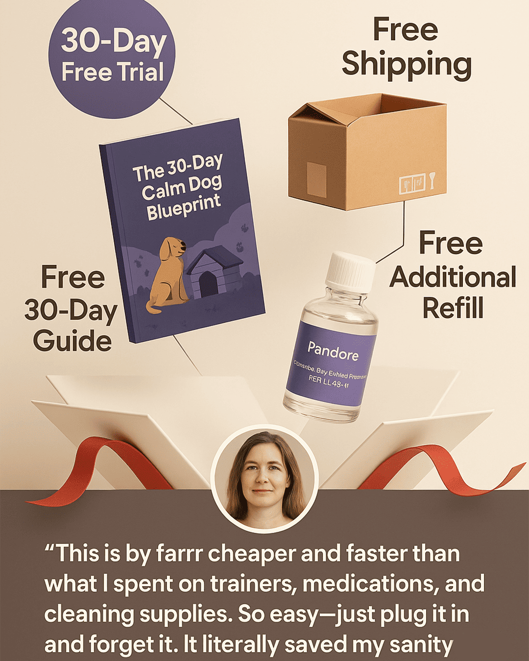 Pandore comes with a 30-day money-back guarantee. Clinical studies show the dual-pheromone formula works for the vast majority of dogs, but individual responses can vary.