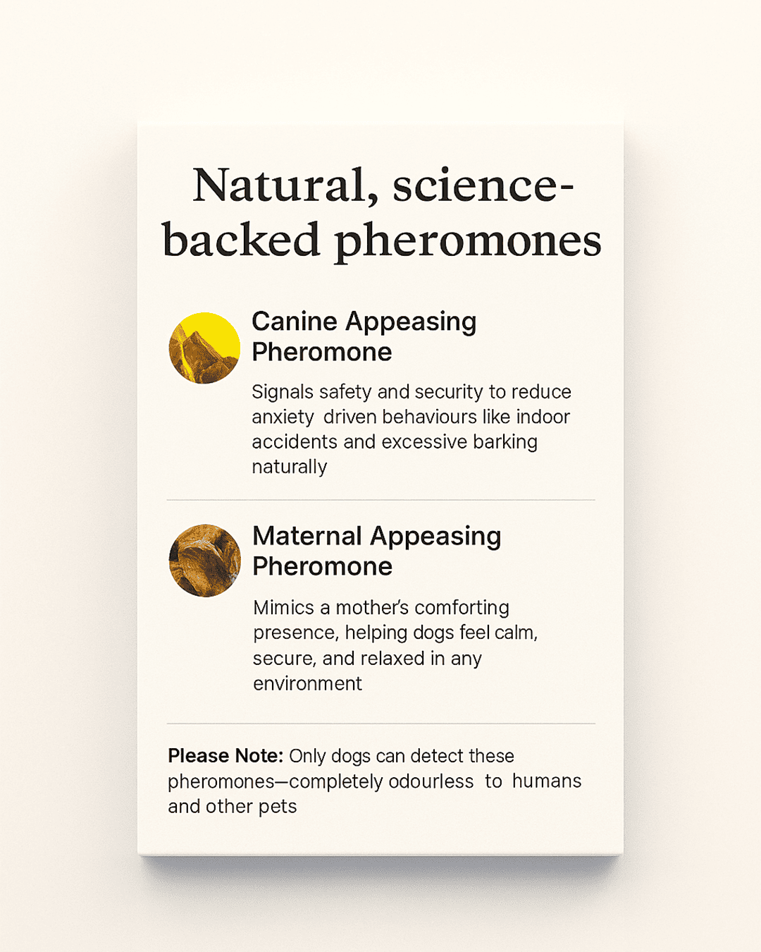 Combines Canine and Maternal pheromones—the two most powerful natural calming signals