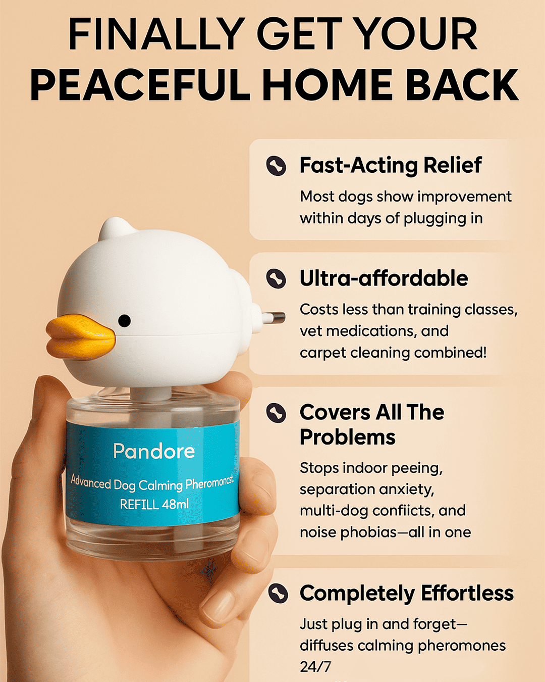 "My rescue dog peed indoors 3-4 times daily despite being house-trained. I was embarrassed to have anyone over and spent a fortune on cleaning products. Within 48 hours of plugging in Pandore, the accidents stopped completely!! Three months later, still pee-free. I genuinely can't believe something this simple worked!"