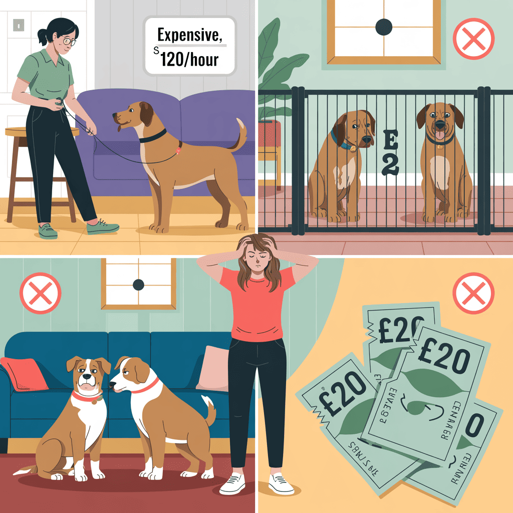 Keeps dogs apart temporarily—but doesn't reduce the stress they feel when together. You're exhausted from constant supervision, and the tension just builds until the next explosion.